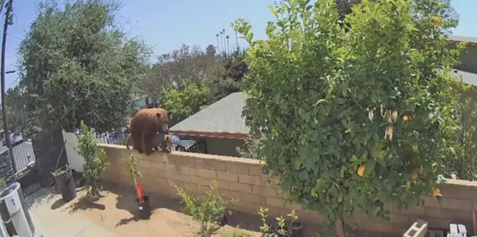 Ситуация произошла в Калифорнии, в городке Брэдбери, долине Сан-Габриэль. В одном из местных дворов медведица с медвежатами забралась на забор. Лесного зверя попытались прогнать собаки, но силы, конечно же, были неравны. Медведица справилась с ними одной лапой.